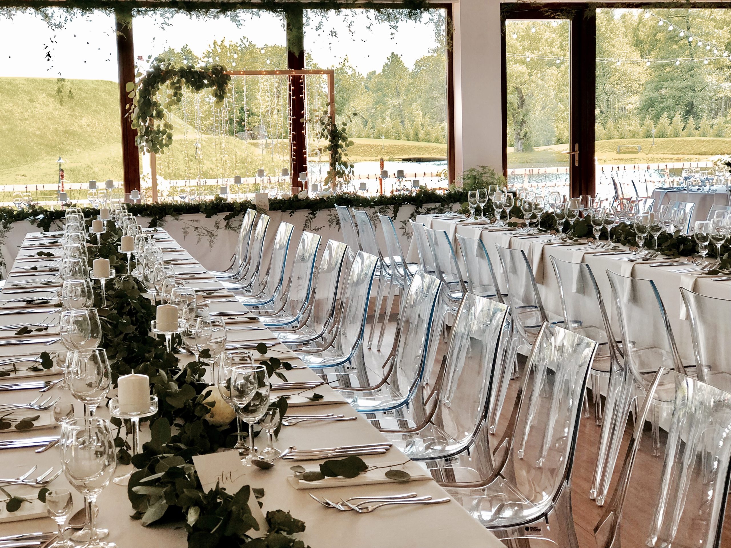 „Prostota jest kluczem do prawdziwej elegancji” jak mawiała Coco Chanel i to wesele jest tego pięknym dowodem. Delikatne i subtelne dekoracje stołów, prosta zastawa i nasze transparentne krzesła Vanity. Ich przeźroczystość nadała całej przestrzeni niezwykłej lekkości. Krzesła, jakich nie widać, a jednak są. Ponad czasowa klasyka, która zawsze jest na czasie.