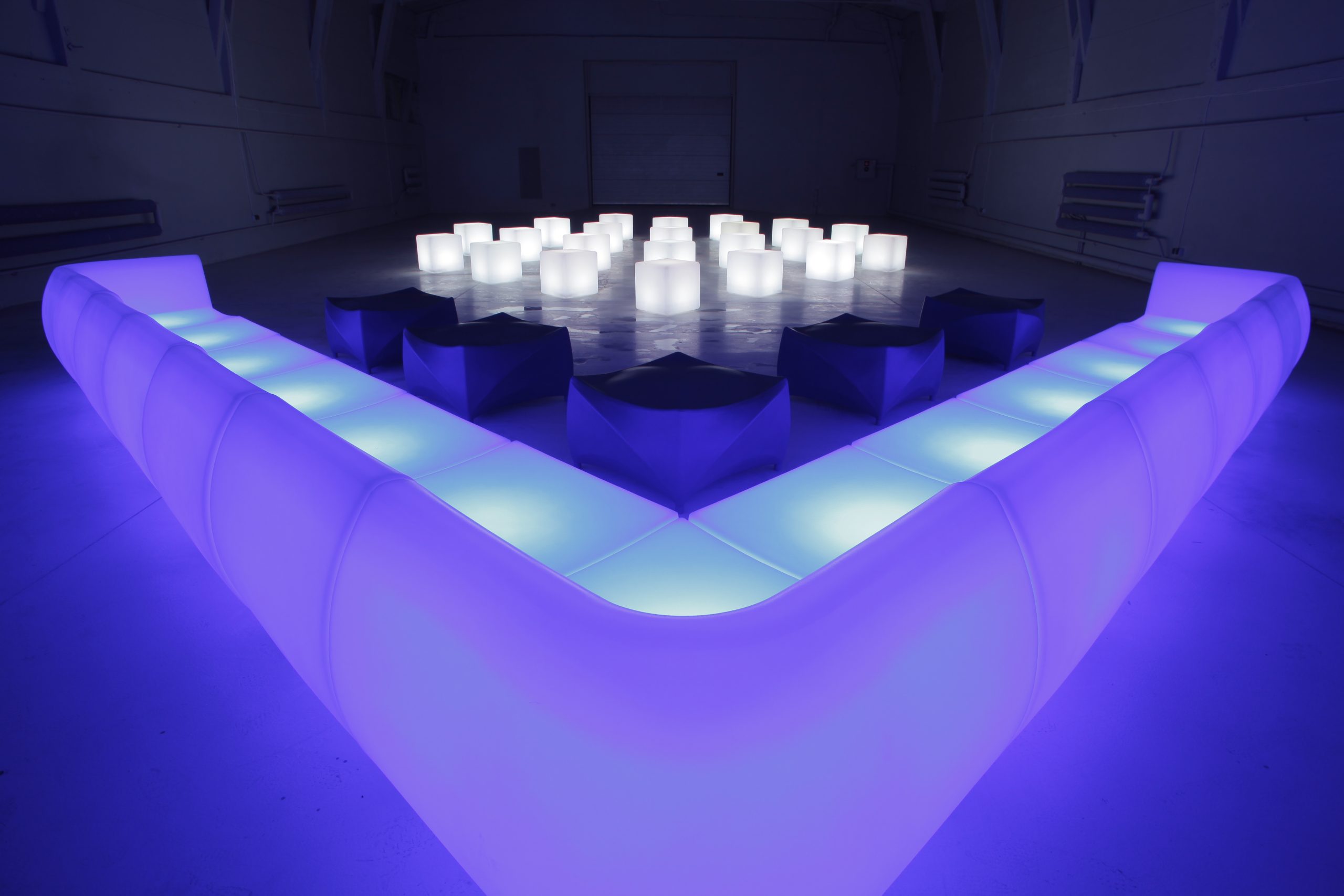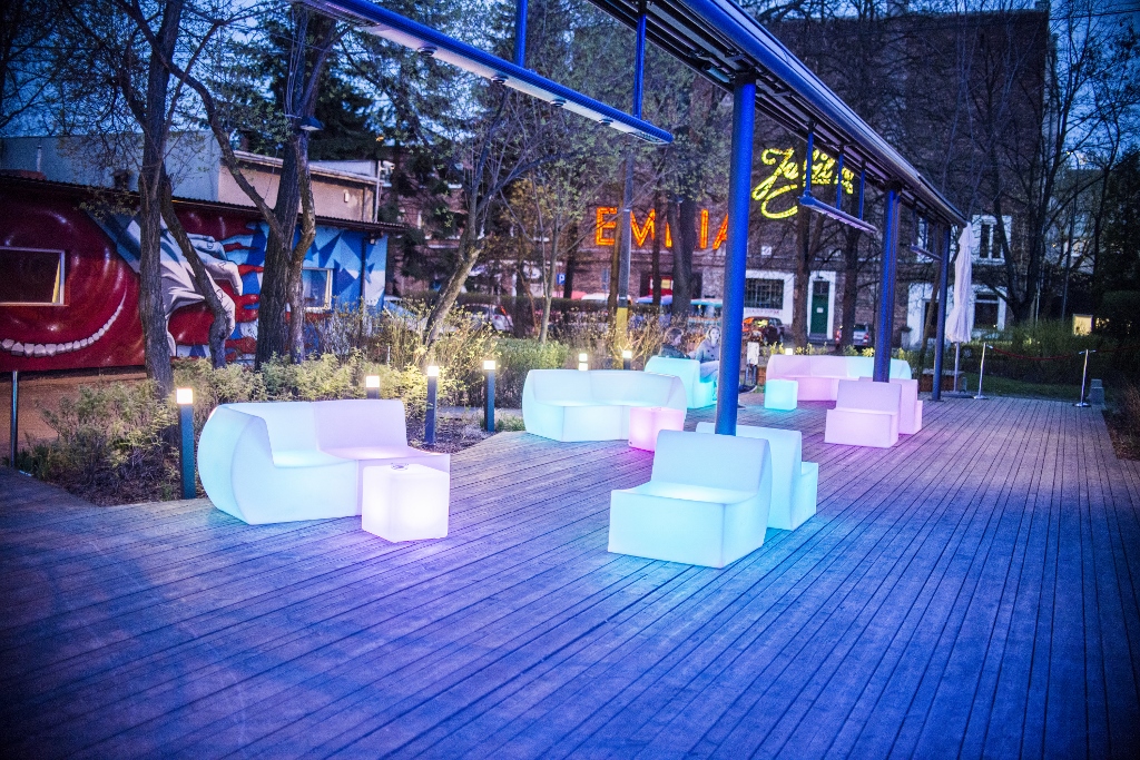 Podświetlane meble typu LED świetnie komponują się m.in. z industrialnymi przestrzeniami. Kanapy, donice, kubiki, kule i wiele innych elementów dekoracyjnych to gwarancja unikalnej atmosfery.