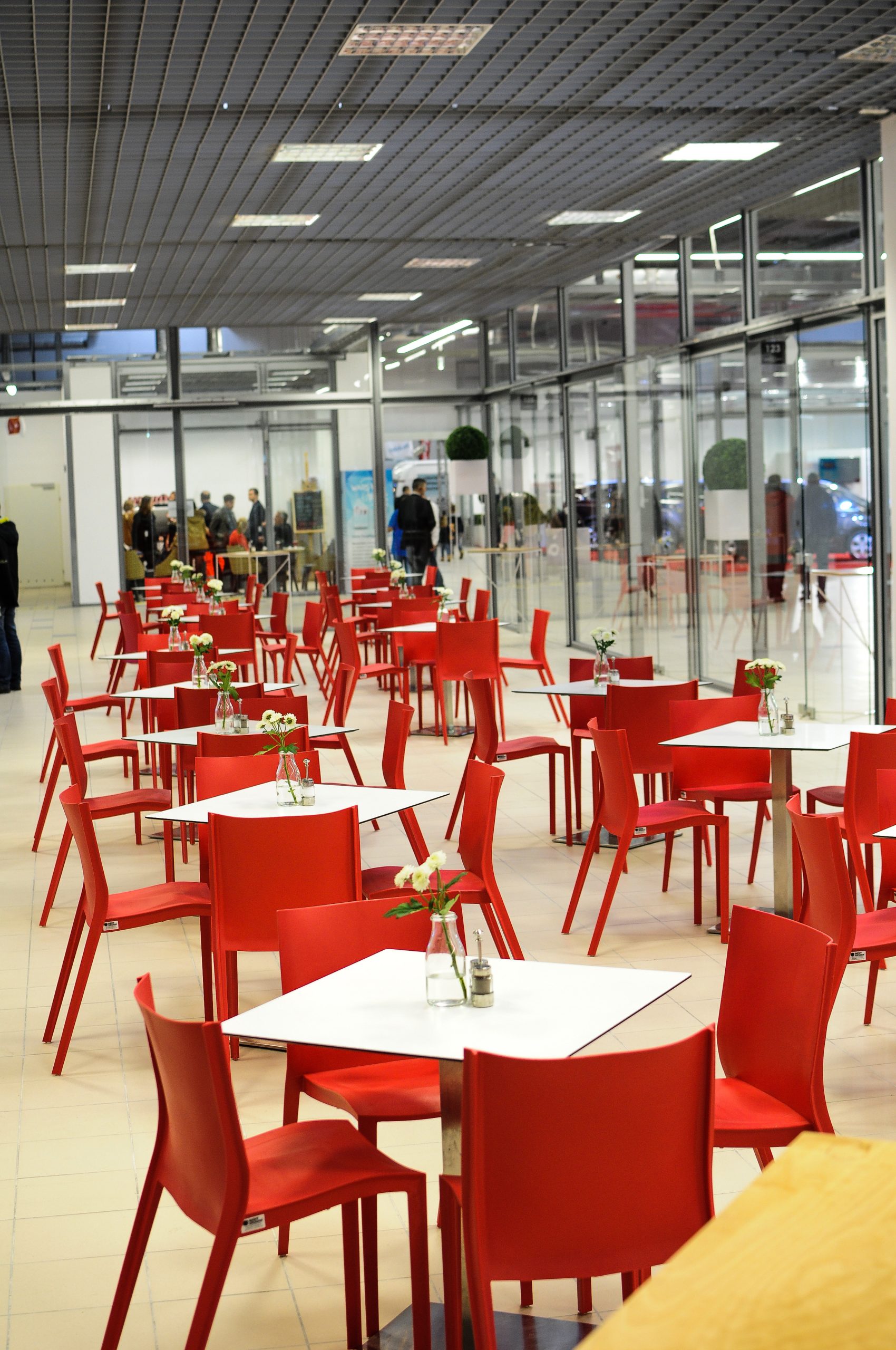 Na zlecenie naszego stałego partnera przygotowaliśmy specjalną aranżację restauracyjną. Doskonale sprawdziły się w niej czerwone krzesła Stick oraz stoliki Dotto. Prosta elegancja i wygoda to cechy, które charakteryzowały tę realizację.