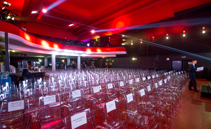 Uroczysta gala składała się z dwóch części i była dla nas dużym wyzwaniem logistycznym. Po rozdaniu nagród laureatom, na czas którego odmieniliśmy wnętrze Teatru eleganckimi, transparentnymi krzesłami Vanity, mieliśmy pół godziny na kompletne przearanżowanie sali i urządzenie jej na styl kabaretowy z użyciem stolików i krzeseł Pari, barów, kanap Tummuz i wielu innych elementów dekoracyjnych. Dzięki pełnej mobilizacji i zaangażowaniu naszej ekipy technicznej podołaliśmy, a finalny efekt zrobił na gościach niezapomniane wrażenie.